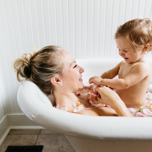 While relaxing in a hot bath late one night after S had gone to sleep I was enthralled with the thought of how nice some fresh flowers surrounding me would be. The next day I grabbed a few leftover flowers from my florist friend and the idea was born.